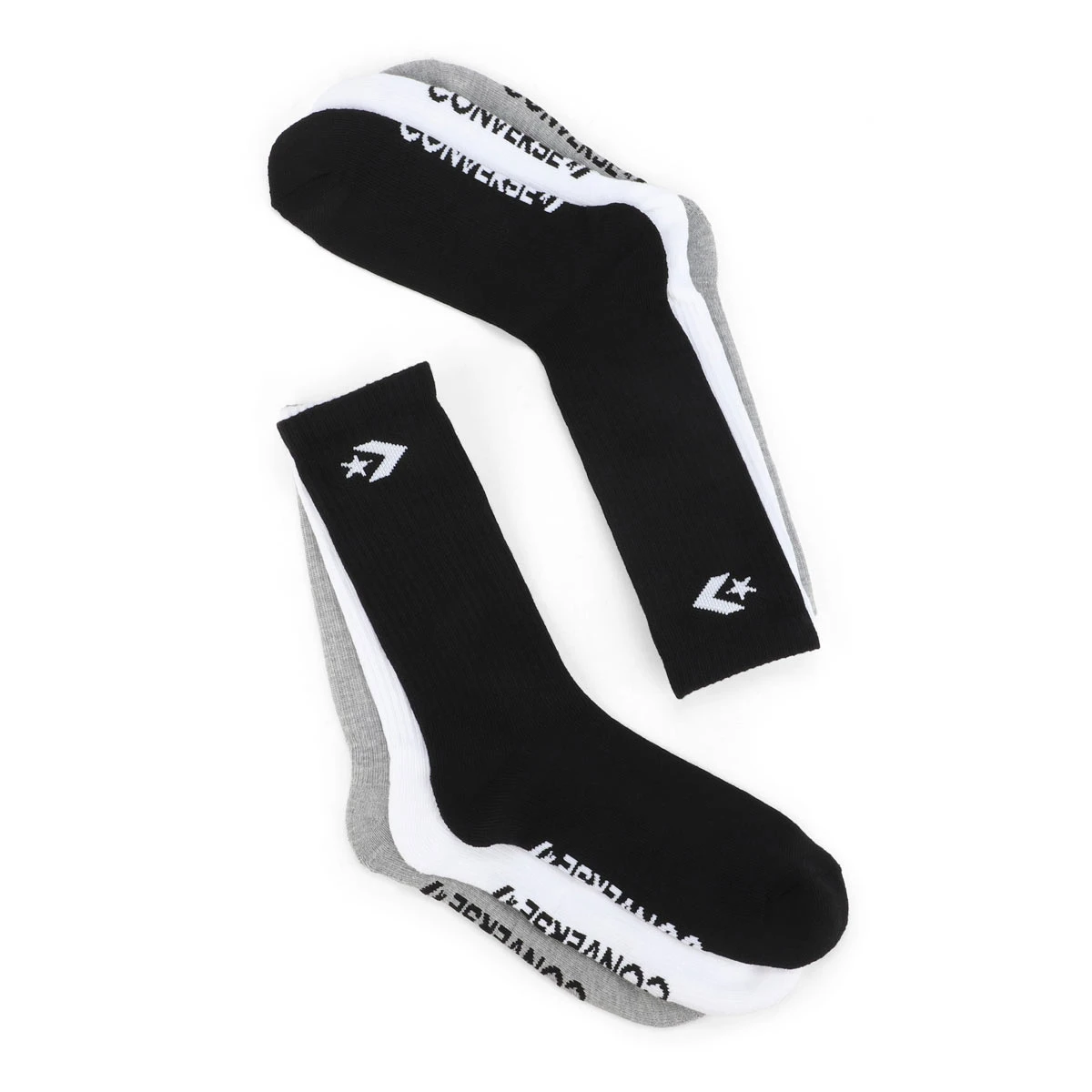 Freedom of movement never looked so good. Converse black Sport Crew socks with reciprocated heel keeps the sock in place. Features a 3-pair pack of socks cut for the style of Chuck Taylor All Star sneakers. There comes a time when rockin’ your Chucks becomes a question of personal hygiene!