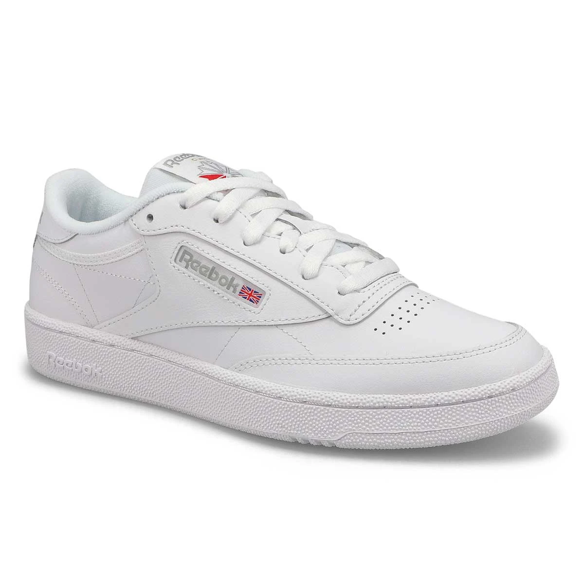 Clean, minimalist design. The Club C 85 white/green tennis-inspired shoes from Reebok keeps your look sleek and simple. Pops of subtle contrast color adds a chic touch. A Reebok logo window with a Union Jack gives them old-school style. The upper is made of soft, flexible leather. There’s nothing quite like a fresh white sneaker!