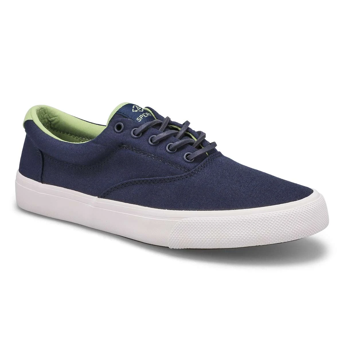 The most-loved Striper II CVO SeaCycled navy sneaker from Sperry Top-Sider gets lighter and more comfortable. Breathable canvas upper gives them a laidback, beachy look. Play to it even further by removing the laces and pairing with broken-in Oxford shorts. Or wear them more done—laced up with khakis and and a crew-neck sweater.